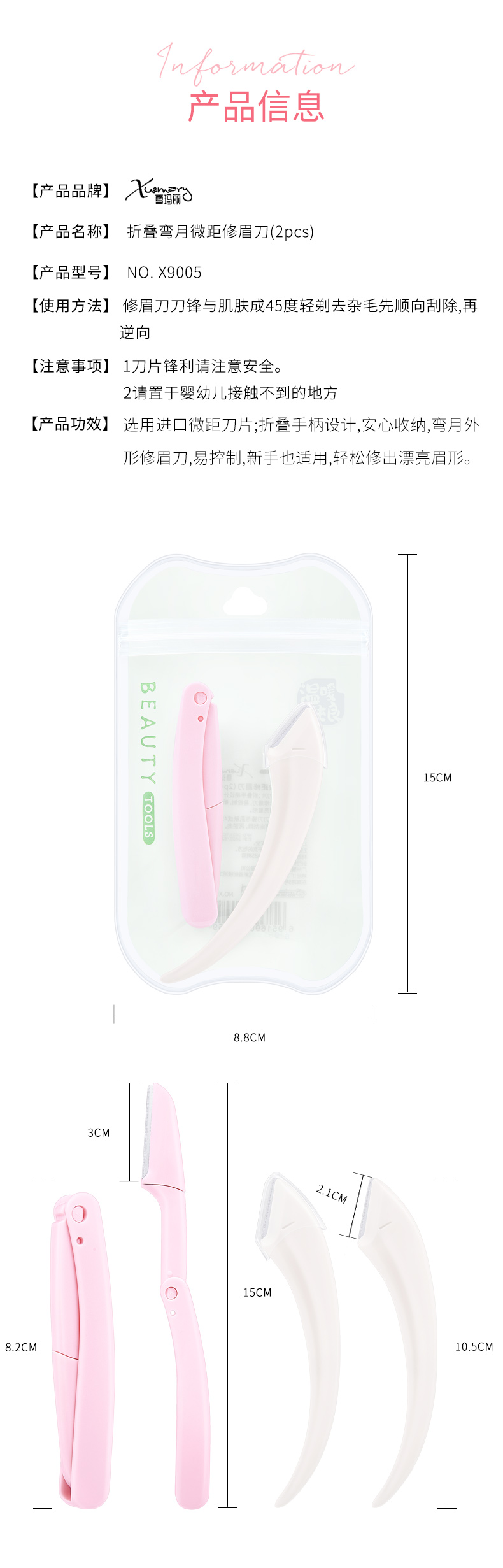 X9005-折叠弯月进口修眉刀2pcs